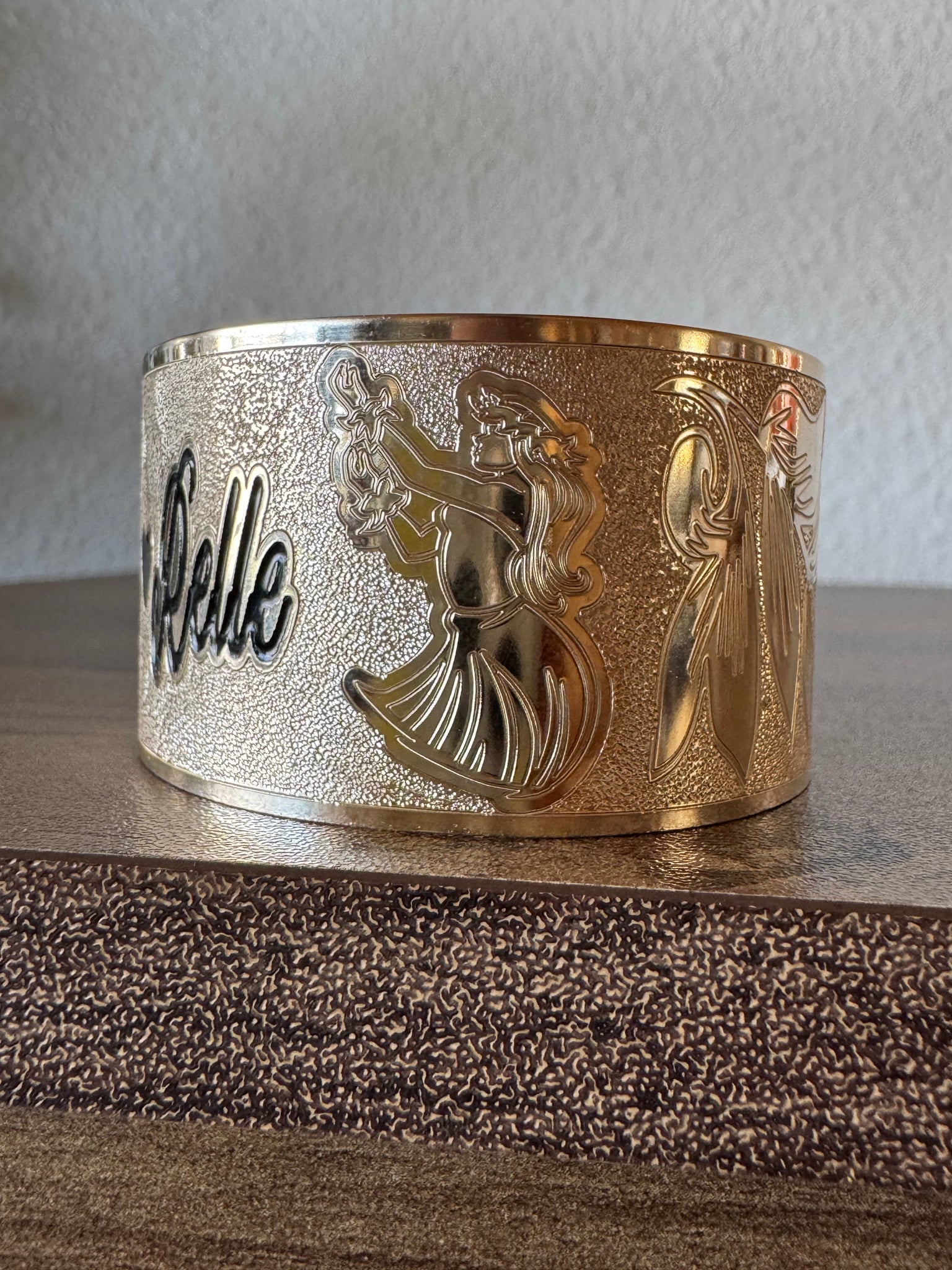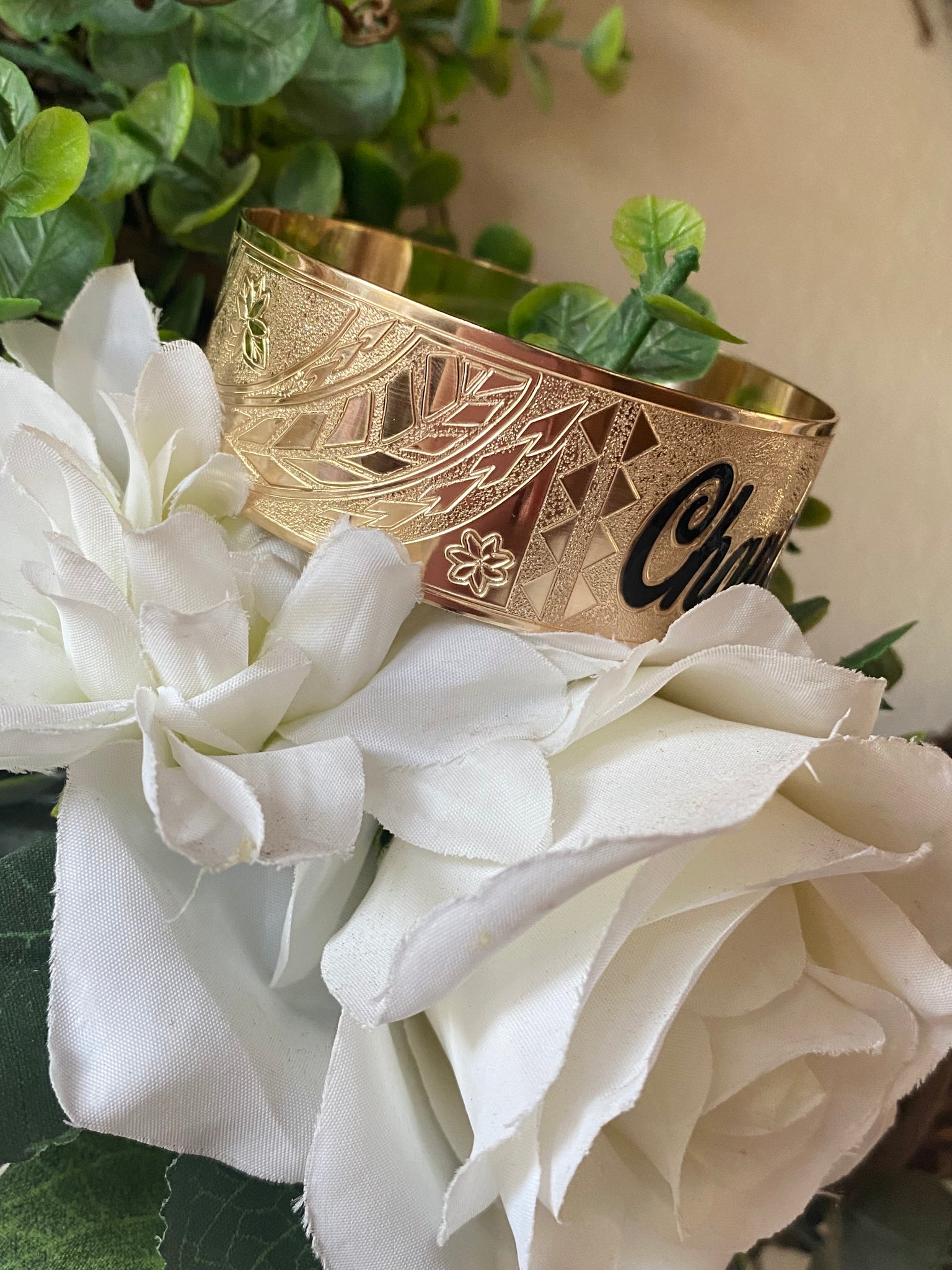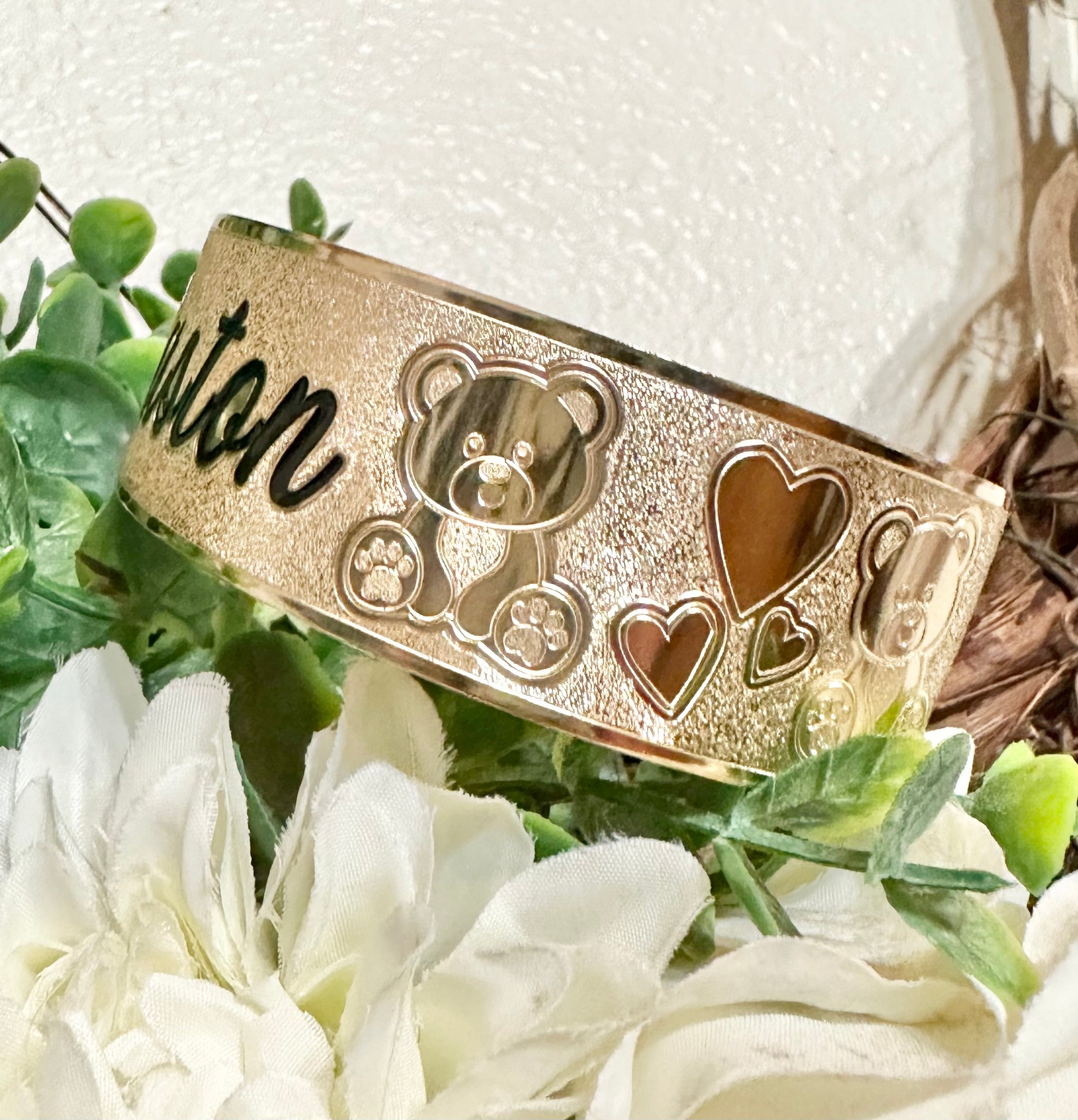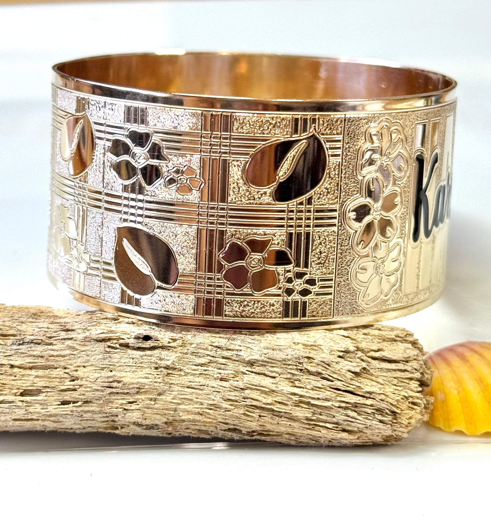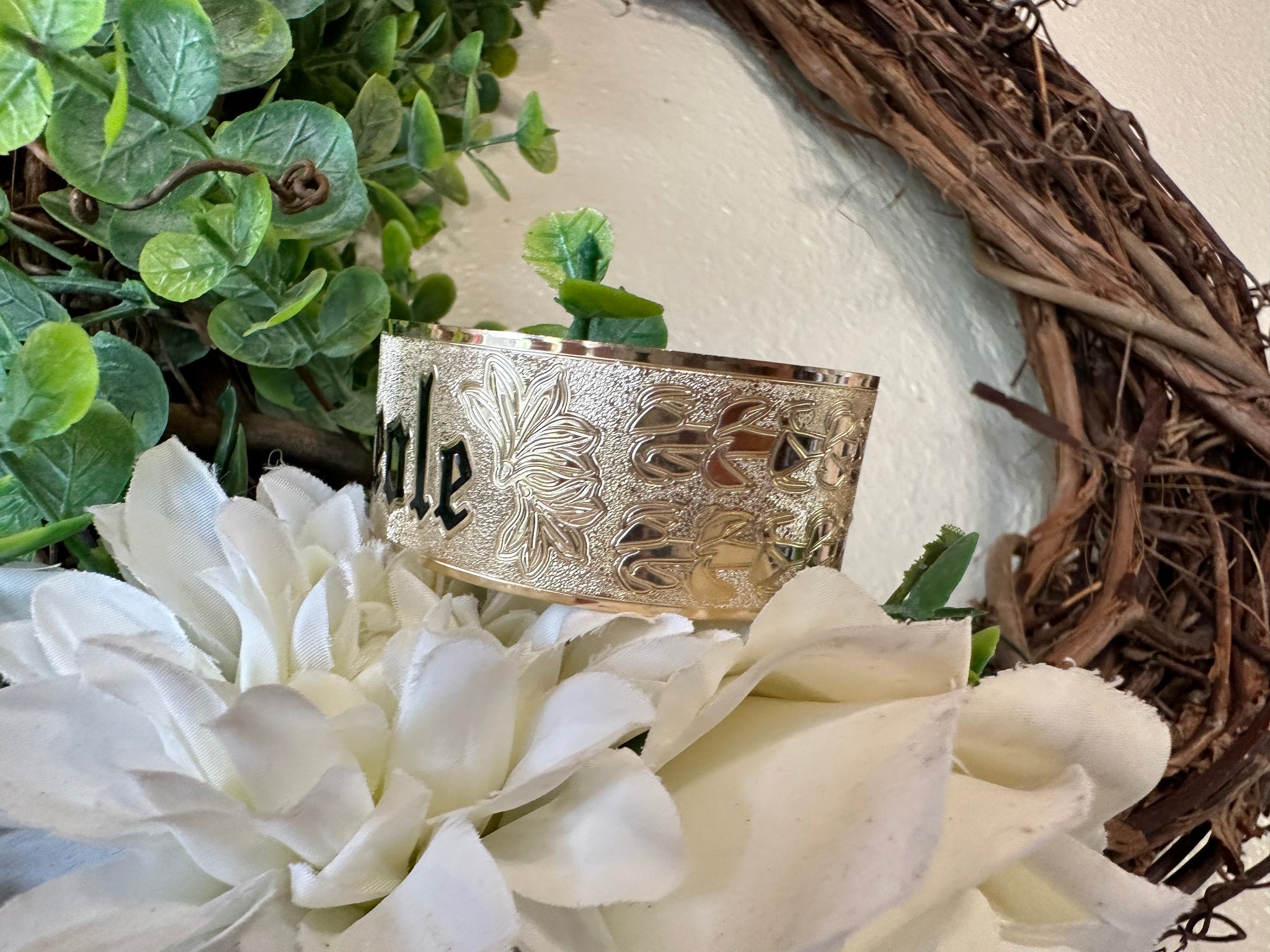 🌟 24mm or 32mm Engraved PATTERN🌟RAW EDGE GOLD FILLED BRACELET ONLY- Includes 10 letters 1st letter capital FINAL SALE (Read whole listing carefully)